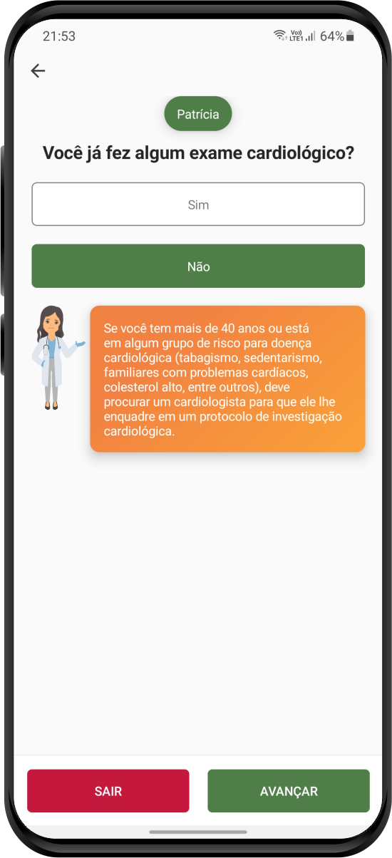 O aplicativo é capaz de criar um perfil epidemiológico dos colaboradores através de questionários desenvolvidos por profissionais da área de saúde. Os questionários são divididos nas diversas áreas da medicina (cardiologia, endocrinologia, ginecologia e outras).